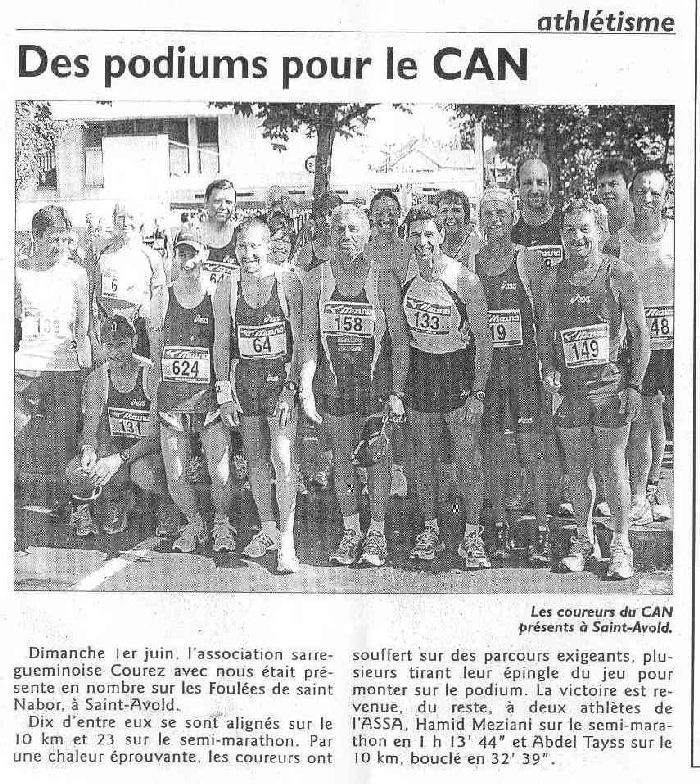 - 18/10/08 : Le comité a décidé de clore les inscriptions . Il y a 1300 inscrits. Par mesure de sécurité, il est préférable d'adopter cette décision. Je pense que l'ensemble des sportifs comprendront la situation. Merci encore à tous les participants et bénévoles - 17/10/08 : à la fin de la journée nous comptions plus de 1200 inscrits !! il y a plus de 600 visites depuis le début du mois sur notre site. Le stand mis en place à l'office du tourisme n'a pas chômé : Merci à tous les inscrits ! rendez- vous dimanche. -13/10/08 : Victoire Caniste à Château-Salins ! Christophe remporte la course des 14,8km. Le Can est a l'honneur aussi avec des podiums dans toutes les catégories et toutes les courses (8km - 14,8km - 28km) - 15/9/08 : Le Challenge a été mis a jour apres la course de Saint-Louis - 8/9/08 : Saint-Louis-Les-Bitche, en attendant le challenge et les resultats des canistes, voici le classement général - 17/08/08 : la course de Hilprich